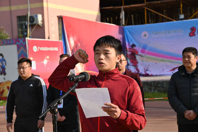 活动上,裁判员代表和运动员代表宣誓。刘志锋主任宣布2020年“青春杯”足球联赛开幕。