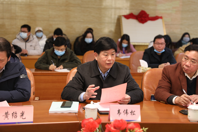 韦联克副局长介绍了河池市职业院校教师培训工作情况及培训成效,韦伟松书记汇报学院教师培训工作情况。