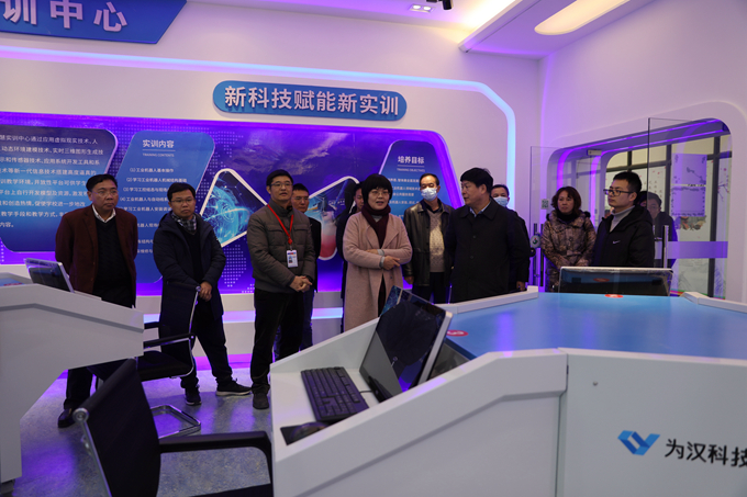 会后,调研组先后参观了学院电商大楼各县市农特产品展厅、机电大楼智能制造实训基地、无人机实训基地等地。