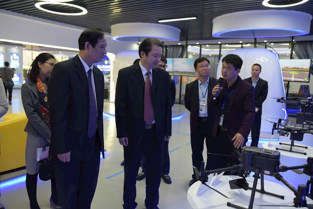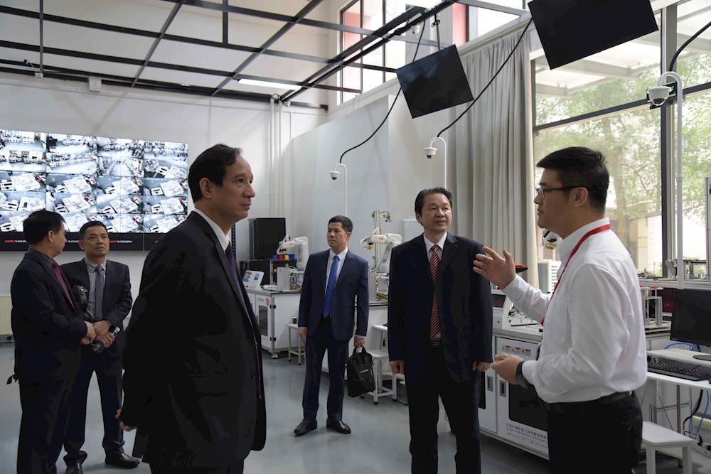 随后,代表团一行参观了我院电商学院、机械制造与自动化实训基地、工业机器人技术实训基地,以及无人机技术应用实训基地和校园环境。陈金榜一行对我院先进的职业教育理念、完备的实训室设施给予高度肯定和评价,并表示希望未来能与我院有更深层次的合作。
