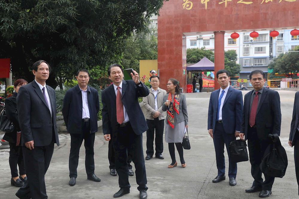 4月21日上午,越南驻南宁总领事馆代表团陈金榜等一行6人到我院参观考察,学院院长黄绍光、副院长杨奎陪同考察。院办、团委、综合处、机电系、信电系的主要负责人参加了考察接待活动。