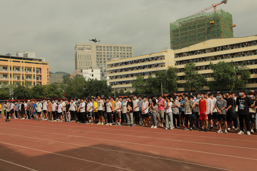 9点30分,伴随着警报信号响起,应急疏散演练迅速展开,各宿舍楼层疏散引导教师提前到达指定位置,组织学生捂住口鼻弯下腰,快速按照疏散路线撤离。逃生过程中,学生不拥挤、不慌张、不推搡,全体师生迅速撤离至宿舍区域,整个演练紧张而有序地进行。撤离至田径场集合地点后,各班班主任清点人数,依次报告情况。