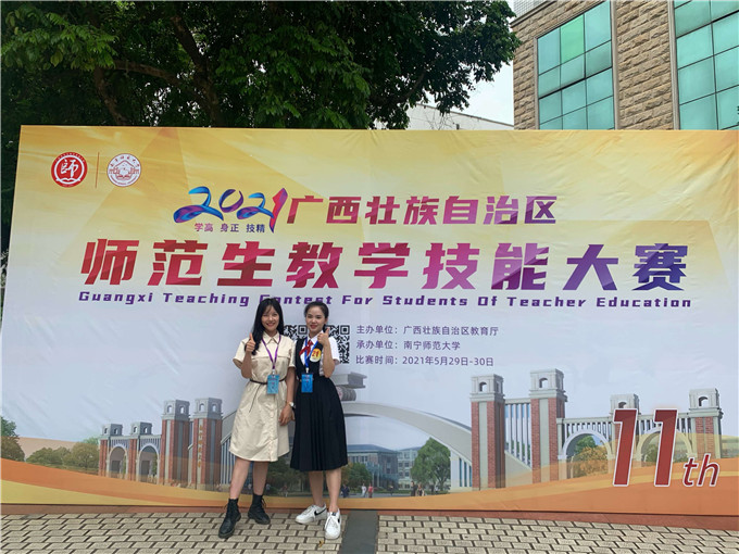 2021年5月29日至30日,由广西壮族自治区教育厅主办、南宁师范大学承办的“2021广西壮族自治区师范生教学技能大赛”在南宁举行。据大赛组委会日前公布的成绩,我院教育系18学前衔接4班韦琳怡获学前组一等奖第一名,19小教2班冯志田获小学数学组二等奖,实现了全区师范生教学技能大赛2016-2018年、2020-2021年五年夺冠,为学院技能大赛荣誉榜单又增浓墨重彩的一笔!
