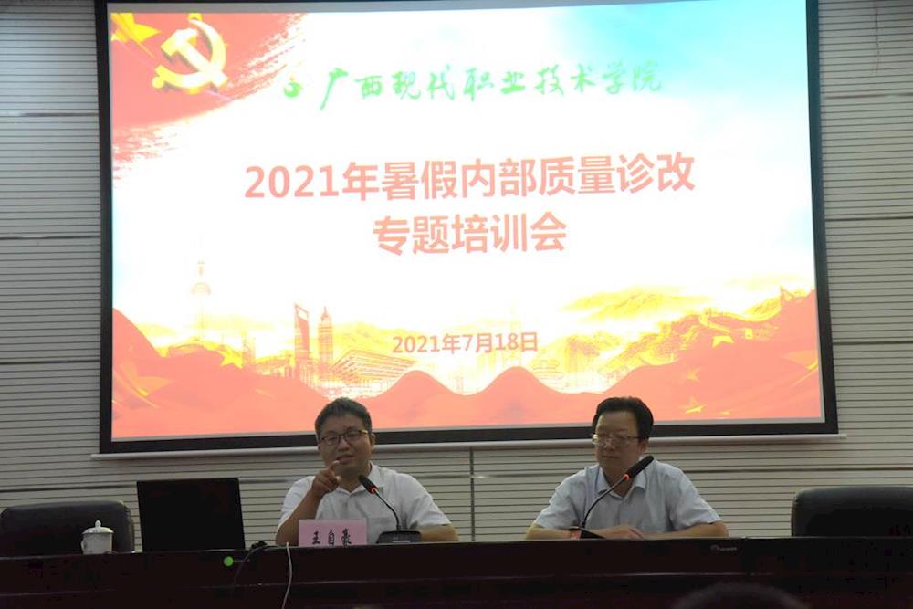 7月18日下午,我院邀请广西诊改委专家库专家、广西工业职业技术学院质管办主任王自豪教授,为全体教职工作内部质量诊改专题培训。学院副院长卢森焕、黄耀,及400多名教职工参加了本次培训会。