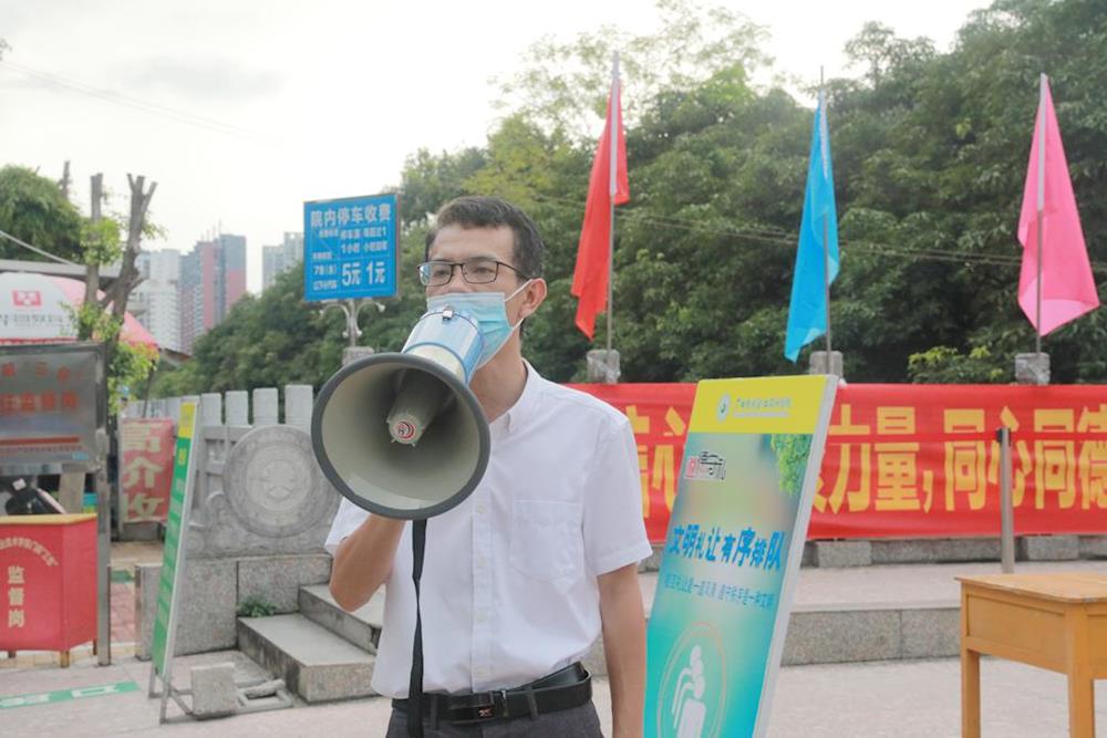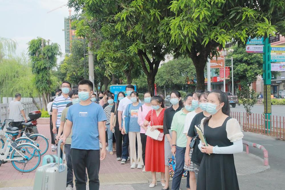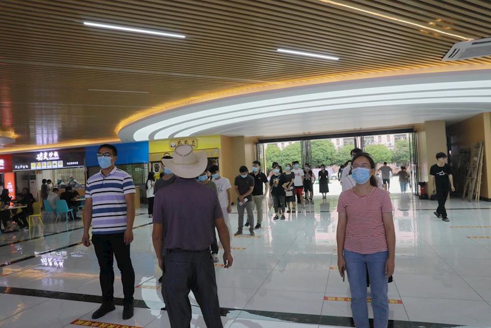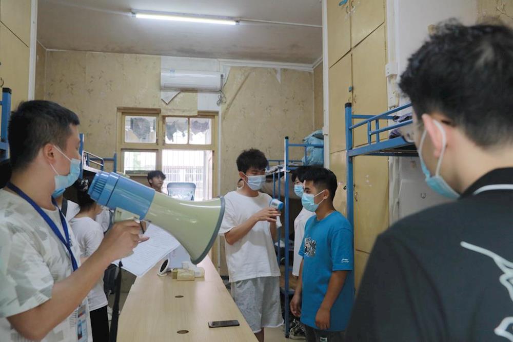 疫情防控理论课结束后,在学院相关负责人的带领下新教师们排队集合,有序的开展实际演练培训。