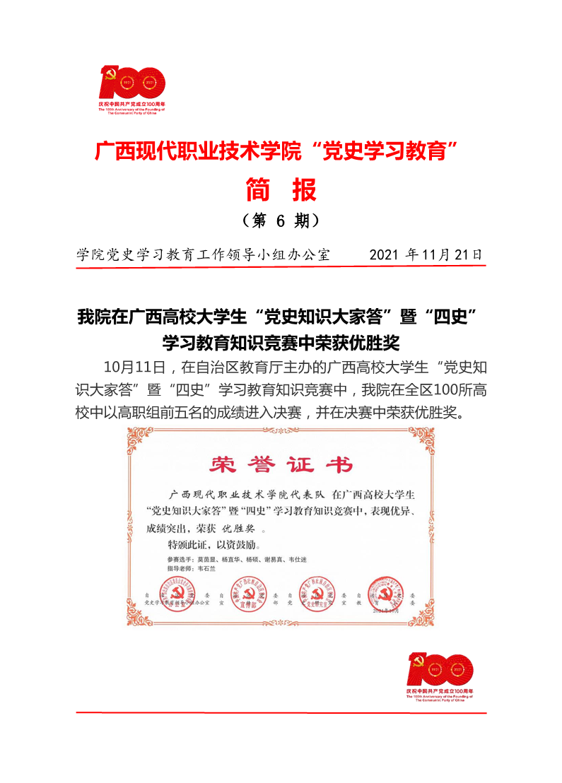 广西现代职业技术学院“党史学习教育”简报 第6期