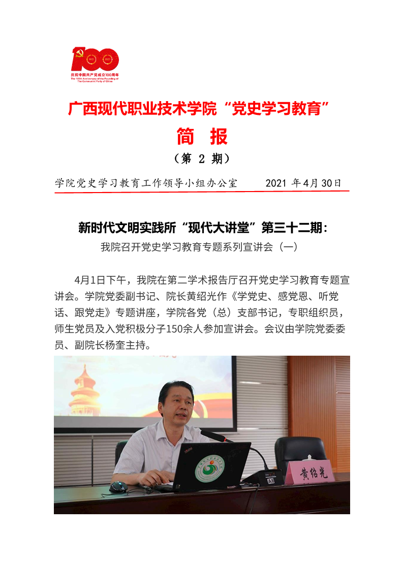 广西现代职业技术学院“党史学习教育”简报 第2期