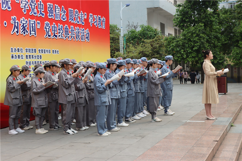为进一步激励师生记党史,担使命,爱家国的革命情怀,教育系分团委于4月23日上午在学院喷泉广场开展致“青春·为家国”党史经典共读主题活动。本次活动是由党员教师李奕莹领读,教育系分团委学生会全体成员、及19和20级学生代表等约500人参与。