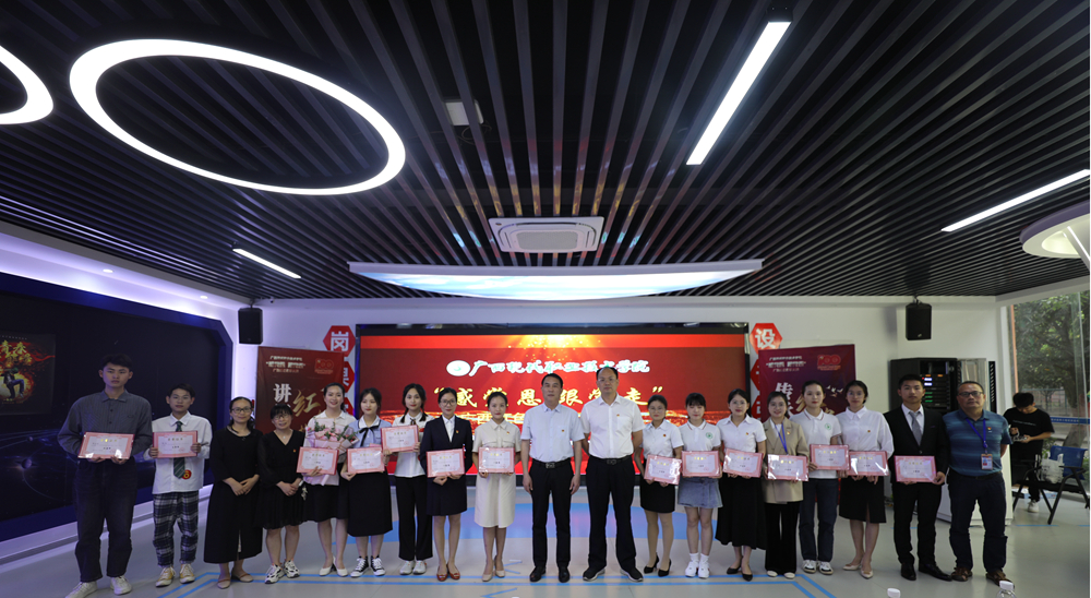 百年征程波澜壮阔,百年初心历久弥坚。为推动我院党史学习教育走深走实,推荐优秀选手参加全市、全区高校乃至全区比赛,展现学院良好形象及党史学习教育成效,5月18日下午,我院在无人机基地举办广西现代职业技术学院“感党恩 跟党走”广西红色故事大赛决赛。学院纪委书记张斌、副院长杨奎、院长助理覃孜、各党支部书记、参加比赛的所有师生选手及全体教职工党员在现场观看决赛;全体学生在教室通过一体机观看现场直播。