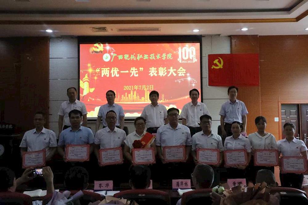 在庄严的国歌声中,大会拉开帷幕。杨奎副院长宣读了自治区、河池市、学院相关表彰文件,与会领导分别为先进基层党组织和优秀共产党员、优秀党务工作者颁奖。