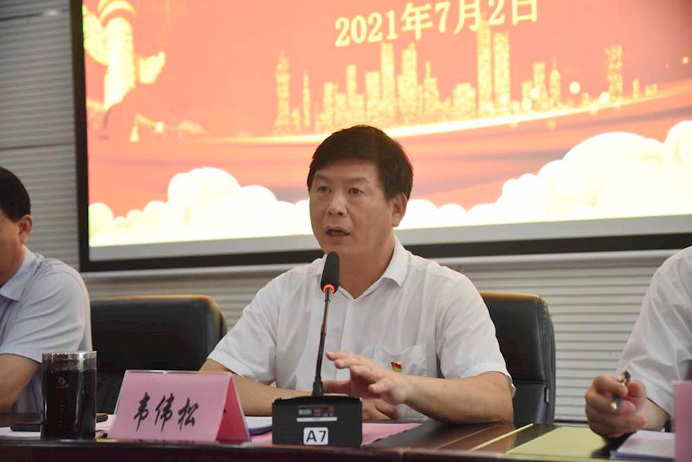 在庄严的宣誓词结束后,韦伟松书记作了总结讲话。他首先向刚才宣誓入党的新党员同志们,及受到表彰的优秀共产党员、优秀党务工作者和先进基层党组织表示热烈地祝贺,向“光荣在党50年”的老党员表示崇高的敬意。他指出,过去的一百年,是中国共产党筚路蓝缕探索、矢志不渝奋斗的一百年,带领中国人民实现了“四个伟大成就”;过去一年,学院党委在党的坚强领导下,带领全体师生实现了学院事业高质高效发展。在奋斗“十四五”的新征程上,他对全体党员提出了三个要求:一是要进一步提高政治站位,强化责任担当;二是要持续抓好党史学习教育,强化思想引领促发展;三是要牢记为党育人、为国育才使命,履行好育人教书职责。全体党员们要不负韶华,敢当先锋,争做表率,将对党的一腔热情和一腔忠诚化作改革创新的动力,勇担学院改革发展使命,在学院高质量发展新征程上扬帆起航、破浪前行,以优异的成绩献礼党的百年华诞。