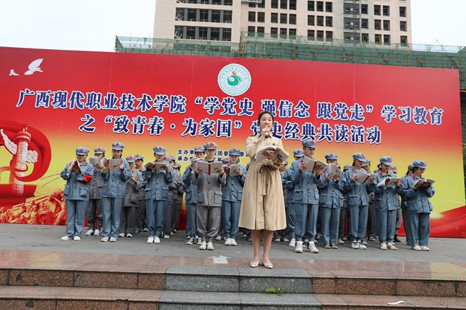 为庆祝建党100周年,重温中国共产党光辉历程,进一步激发广大青少年爱党、爱国热情,坚定共产主义理想信念,深入推进“学党史、强信念、跟党走”学习教育,近日,我院在喷泉广场举行了“学党史,强信念,跟党走”学习教育之“致青春·为家国”为主题的党史经典共读活动。