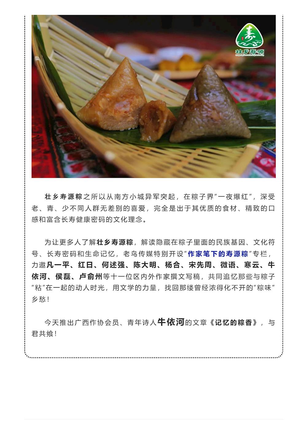 [老鸟传媒·壮乡寿源粽专栏]广西诗人牛依河作品:记忆的粽香 来源:老鸟传媒 发布时间:2022-11-14 17:30:59 浏览次数: 次 【字体:小 大】 终审:gxxdxcb004 【打印正文】 相关信息