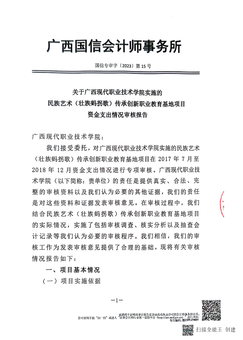 民族文化传承(壮族蚂拐歌)创新职业教育基地项目审计报告 来源:教师教育学院 发布时间:2023-11-29 17:26:19 浏览次数: 次 【字体:小 大】 文件下载:民族文化传承(壮族蚂拐歌)创新职业教育基地项目审计报告.pdf 终审:gxxdxcb003 【打印正文】 相关信息