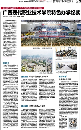 [南国早报]广西现代职业技术学院特色办学纪实 来源: 发布时间:2016-07-05 09:07:25 浏览次数: 次 【字体:小 大】 广西现代职业技术学院特色办学纪实 [文章摘要] 今年是国家提出智能制造2025的第二个年头,作为智能制造的人才培养基地——广西现代职业技术学院,全面领悟国家职教发展战略的整体思路,全力投入新一轮职业教育人才培养的浪潮中。 【打印正文】 相关信息