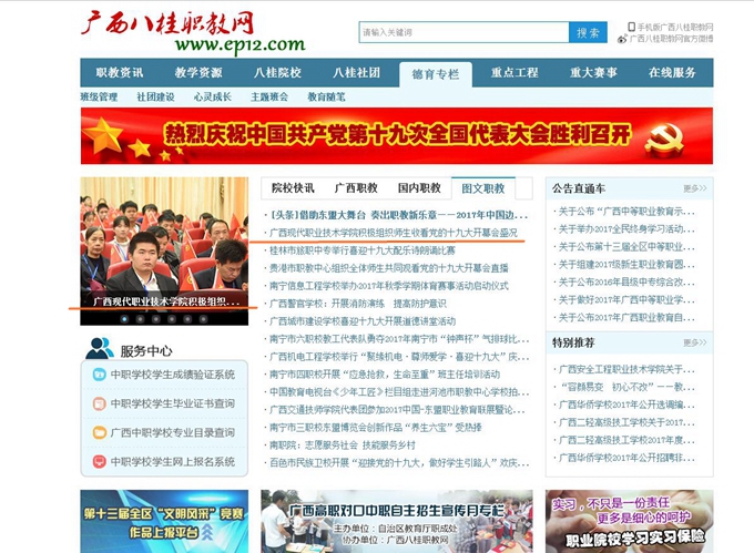 [八桂职教网]广西现代职业技术学院积极组织师生收看党的十九大开幕会盛况 来源: 发布时间:2017-10-19 10:52:29 浏览次数: 次 【字体:小 大】 新闻截图: 新闻链接: 【打印正文】 相关信息