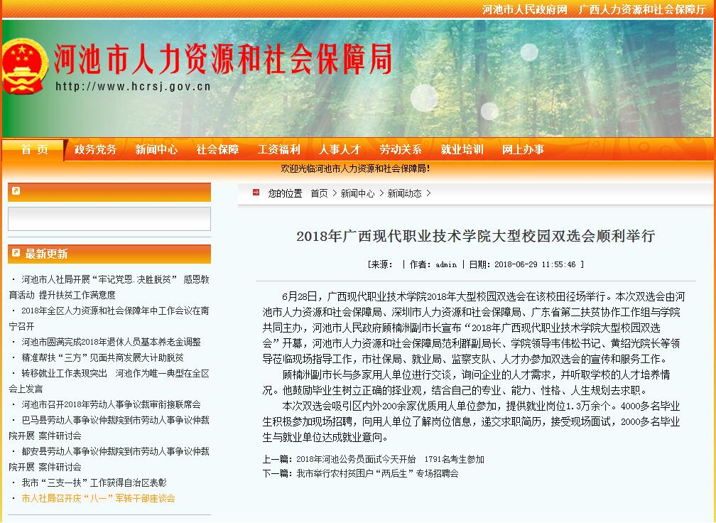 [河池市人力资源和社会保障局官网]2018年广西现代职业技术学院大型校园双选会顺利举行 来源: 发布时间:2018-07-03 19:19:53 浏览次数: 次 【字体:小 大】 【注:请点击以下网址进入观看】 点击网址:http://www.hcrsj.gov.cn/index.php?m=content&c=index&a=show&catid=36&id=1142&&tdsourcetag=s_pcqq_aiomsg 新闻截图: 【打印正文】 相关信息