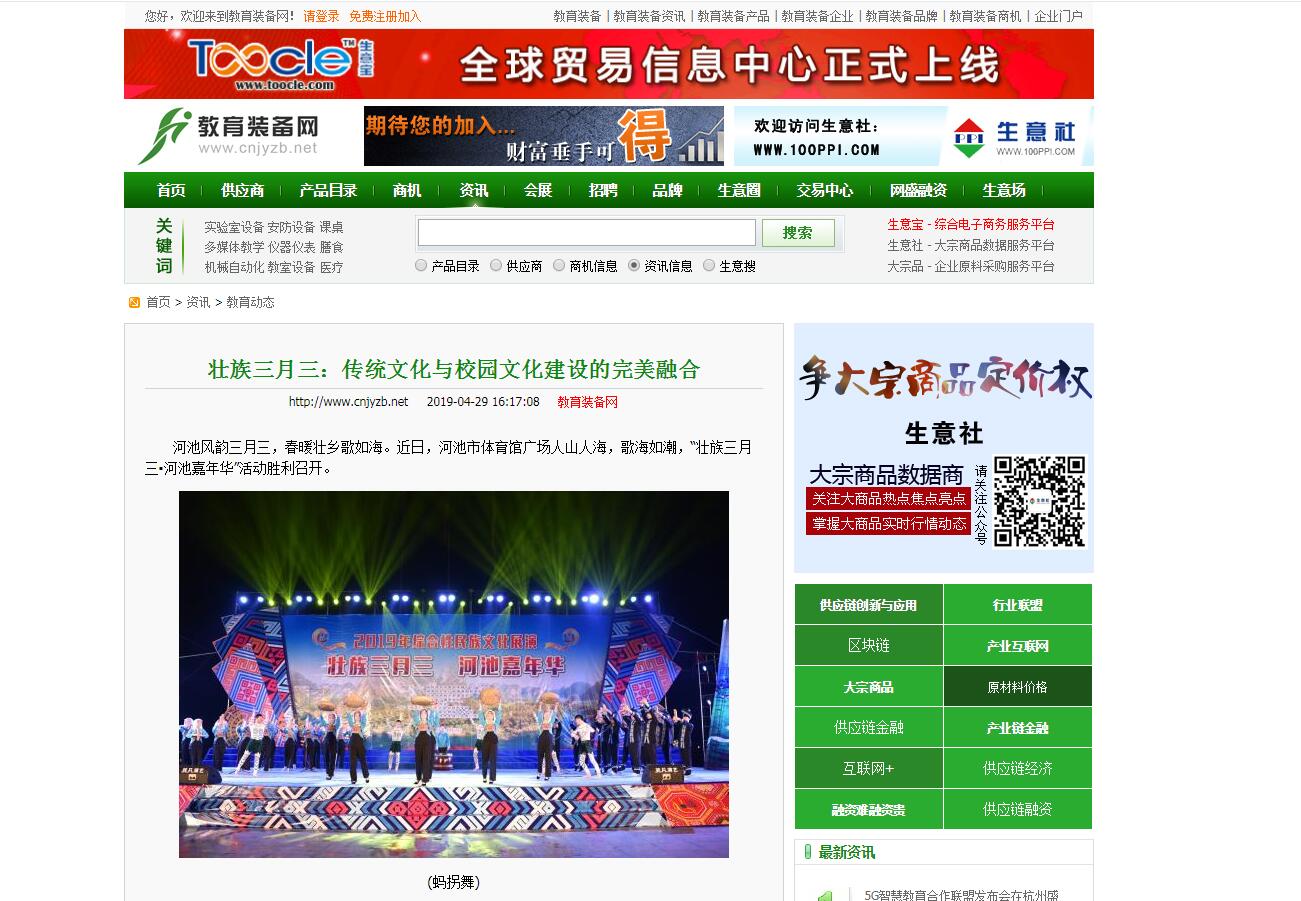 [教育装备网]壮族三月三:传统文化与校园文化建设的完美融合 来源: 发布时间:2019-04-30 20:36:29 浏览次数: 次 【字体:小 大】 新闻截图: 终审:gxxdxcb003 【打印正文】 相关信息