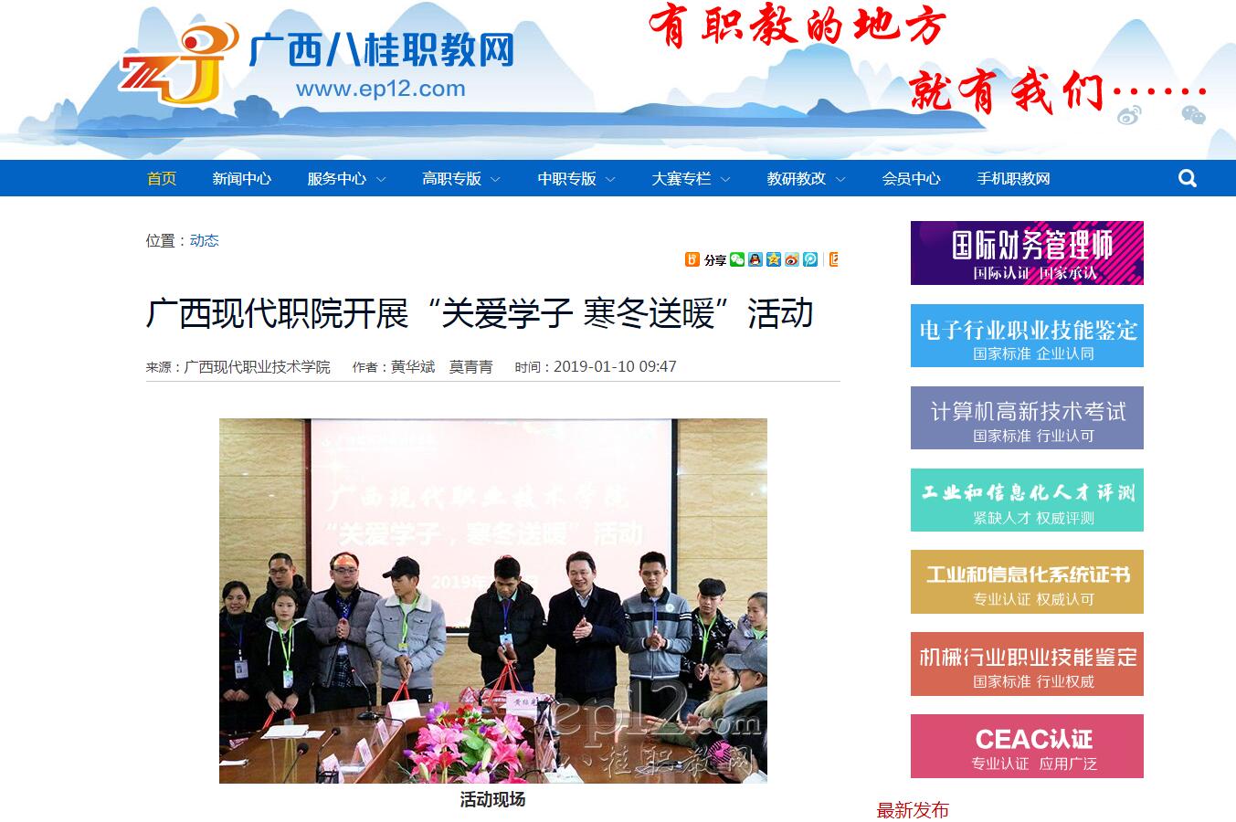 [八桂职教网]广西现代职院开展“关爱学子 寒冬送暖”活动 来源: 发布时间:2019-01-10 17:21:17 浏览次数: 次 【字体:小 大】 作者: | 日期:2019-1-10 17:21:17 | 浏览数:553 | 今日浏览数:1 新闻截图: 【打印正文】 相关信息