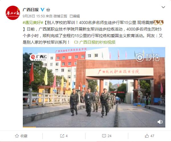 [广西日报微博]4000名多名师生徒步行军15公里 现场震撼
