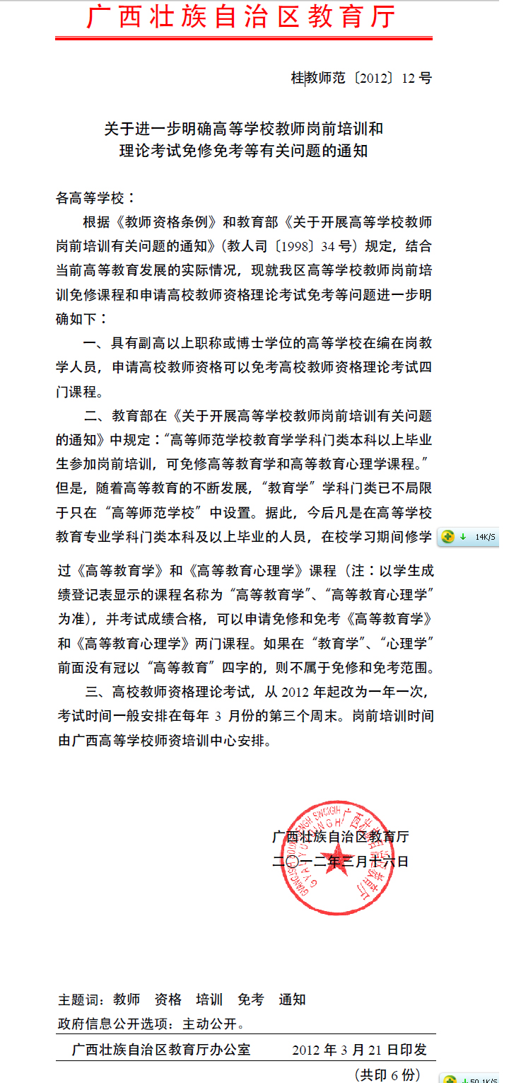 关于进一步明确高等学校教师岗前培训和理论考试免修免考等有关问题的通知