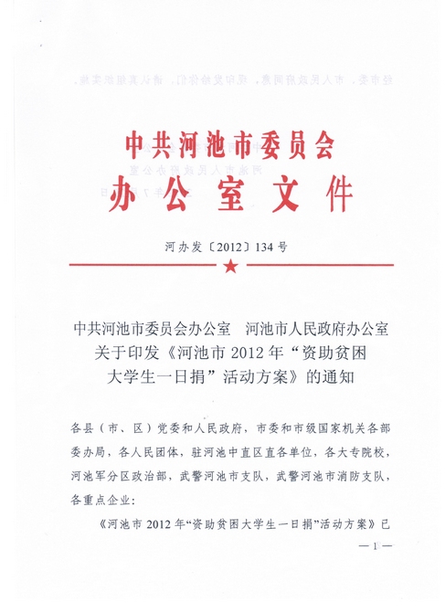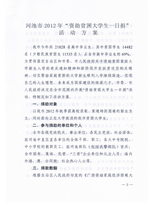 附件:河池市2012年“资助贫困大学生一日捐”活动方案的通知