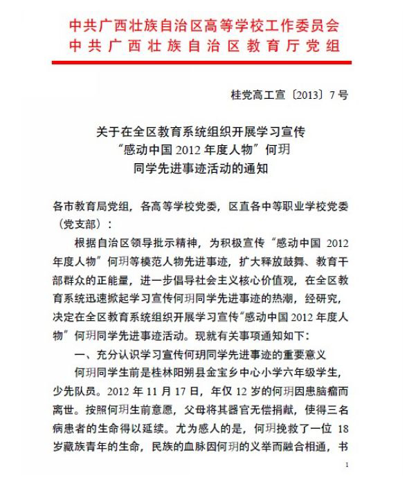 关于在全区教育系统组织开展学习宣传“感动中国2012年度人物”何玥同学先进事迹活动的通知 来源: 发布时间:2013-03-29 15:16:15 浏览次数: 次 【字体:小 大】 【打印正文】 相关信息