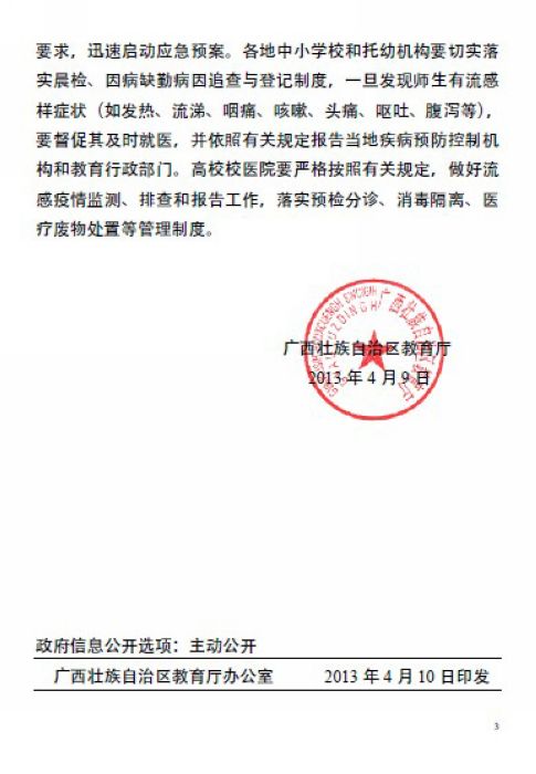 关于做好当前传染病防控工作的通知[桂教体卫艺〔2013〕5号]