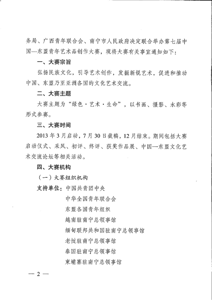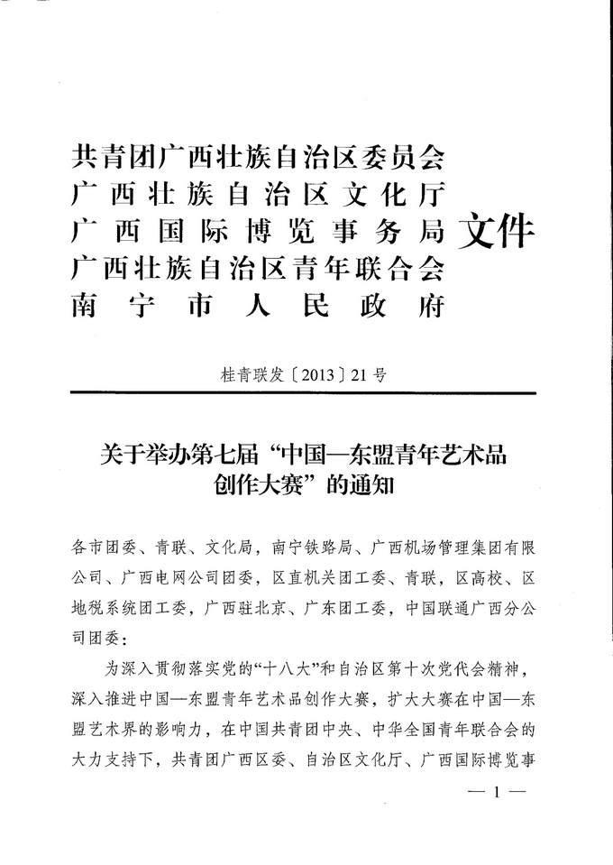 关于举办第七届“中国——东盟青年艺术品创作大赛”的通知(转发)