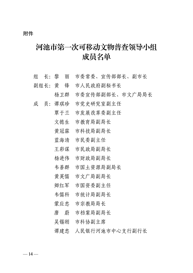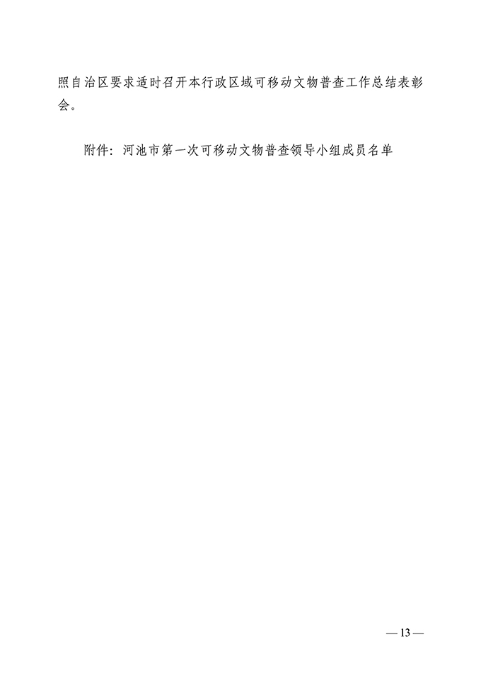 河池市人民政府关于印发河池市第一次可移动文物普查实施方案的通知