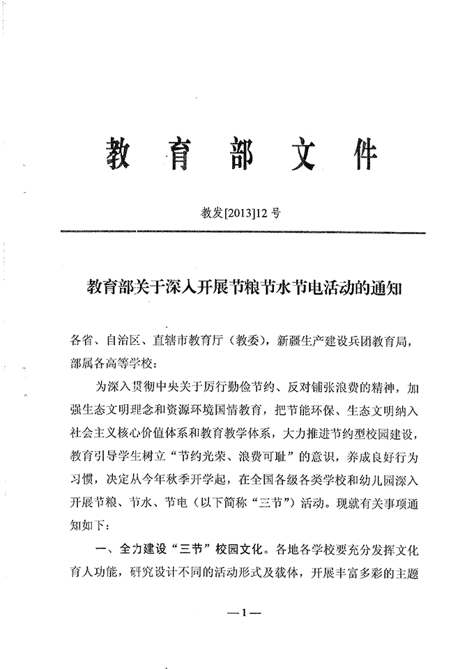 关于转发教育部关于深入开展节粮节水节电活动的通知