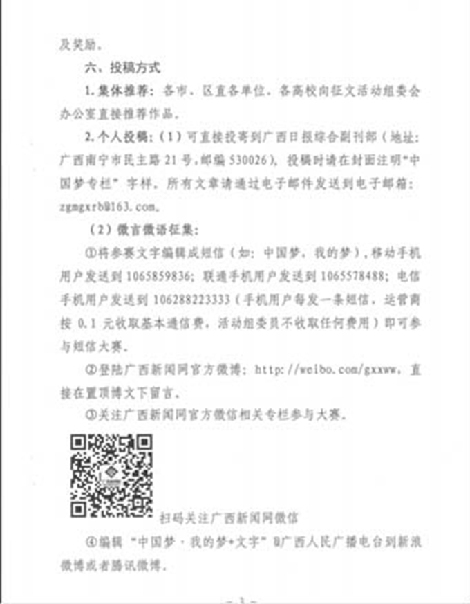 现将自治区党委宣传部《关于开展“中国梦·我的梦”——全区征文活动的通知》(桂宣字﹝2014﹞29号)转发给你们,请按照要求组织本总支广大师生积极参加,并于2014年6月15日前将推荐上送的参加作品电子版统一发至学院党委宣传部邮箱:gxxdzyxcb@163.com。