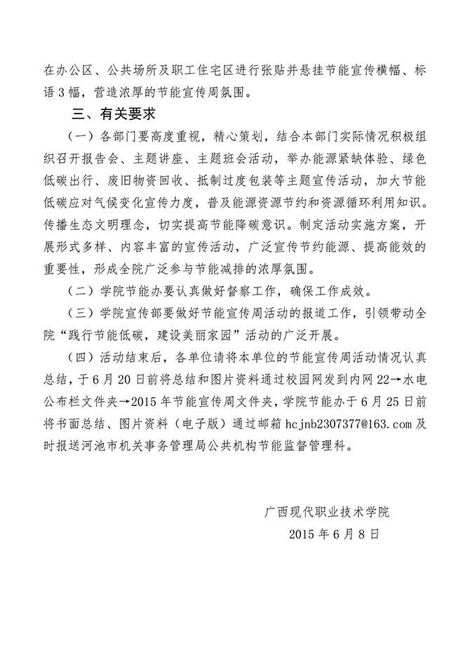 关于开展2015年学院公共机构节能宣传周活动的通知