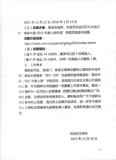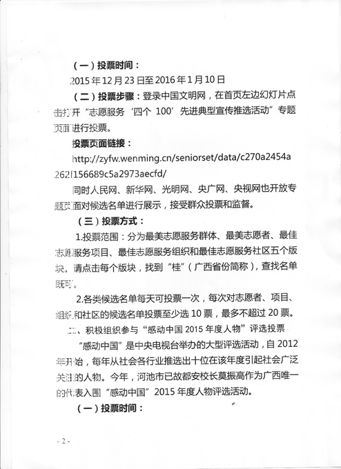 关于做好志愿者服务“四个100”先进典型和“感动中国2015年度人物”评选网络投票工作的通知