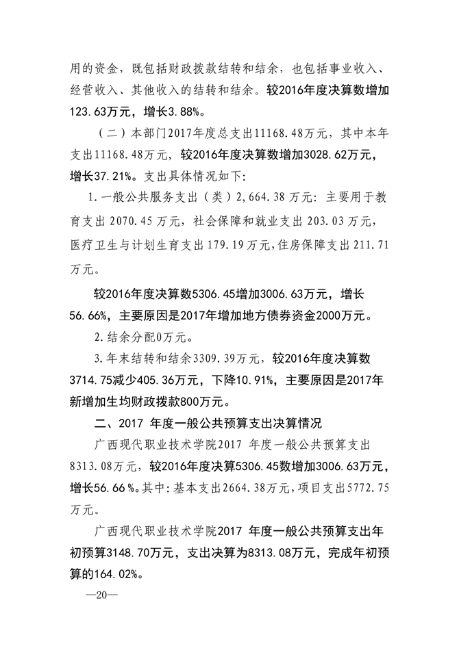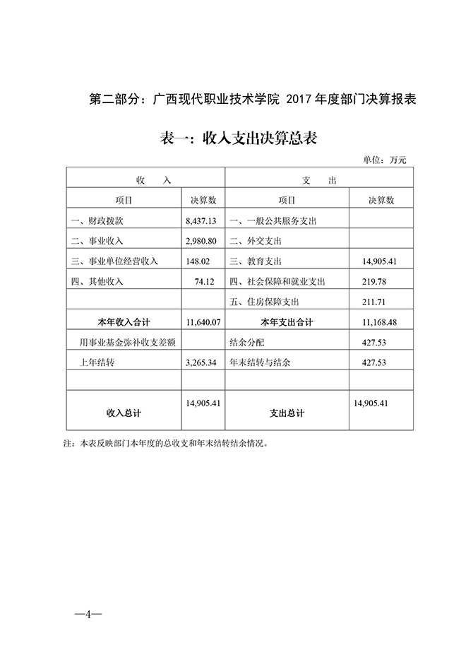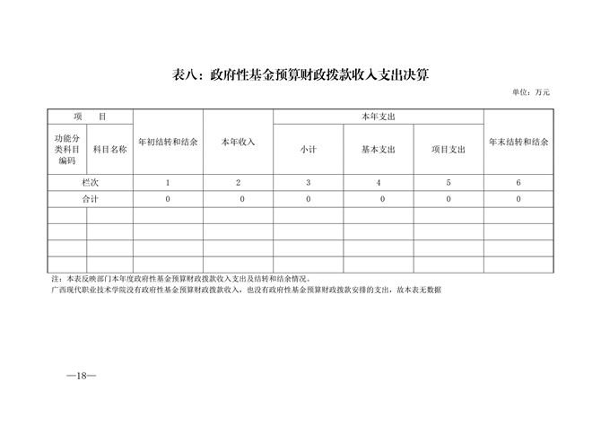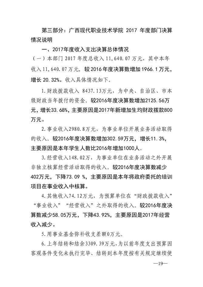 广西现代职业技术学院2017年部门决算 来源: 发布时间:2018-09-18 10:29:18 浏览次数: 次 【字体:小 大】 附件:广西现代职业技术学院决算公开附表.xls 【打印正文】 相关信息