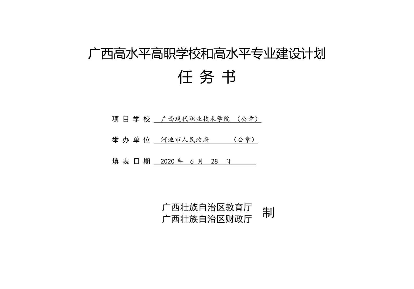广西现代职院--广西高水平高职学校和高水平专业建设计划任务书 来源: 发布时间:2020-07-21 09:09:11 浏览次数: 次 【字体:小 大】 终审:gxxdxcb001 【打印正文】 相关信息