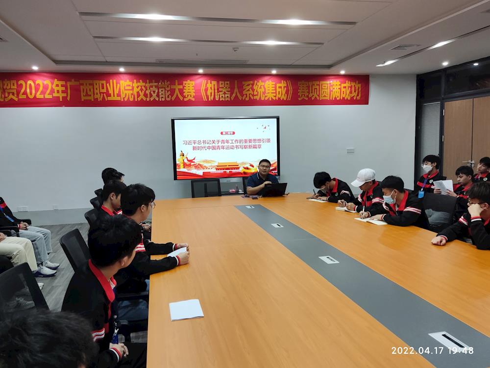 在机电工程学院团委书记吴玉杰老师的主持下,我院“党的青年运动史”专题学习于2022年4月17日晚上七点在机电大楼五楼会议室有条不紊的进行着。同学们态度端正严肃,紧跟党走在时代前列、走在青年前列,展现出我院师生的爱国精神。100年来,我们党始终从确保党的事业薪火相传、确保中华民族永续发展的战略高度看待青年工作,以崇高初心使命感召青年,以科学思想理论武装青年,以不懈奋斗精神激励青年,以广阔事业舞台成就青年,把一代又一代青年团结凝聚在党的旗帜下,为党和国家事业发展作出了重要贡献。