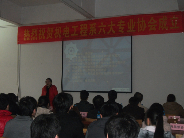 成立大会上,韦建军老师就成立六大专业协会的目的和要求进行了讲话。他说,成立六大专业协会的目的是为了激发同学们的学习兴趣,提高学习能力,动手能力,培养创新意识,促进团结协作精神,做到兴趣与专业相结合,学习与创新结合,在学习和实践中加深对专业知识的了解,弥补自己的不足,在学习中提高自己,在实践和创新中完善自我。学院团委副书记李媛媛老师、系副主任张坤领老师也发表了讲话。为保证各专业协会活动能正常有序的开展,本次成立大会还为各协会配备了指导老师。