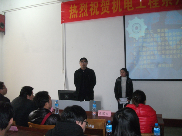 本站机电系讯(朱庆捌、覃最)3月15日下午,机电工程系六大专业协会成立大会在学院多媒体202教室成立。参加本次成立大会的有系主任韦建军老师、学院团委副书记李媛媛老师、系副主任张坤领老师、黄鹏老师以及部分专业老师、辅导员和学生会、团委、学院各协会的骨干成员,成立大会由2011级汽修班的覃建英主持。