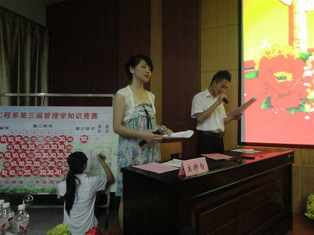 一年一度的管理学知识竞赛是我系的特色之一,本次竞赛以“显管理知识之渊博、秀管理俊杰之风采”为主题。整个竞赛的知识分布科学,结构编排合理,场面包装豪华,是我系学生活动的又一亮点。在比赛中,各参赛代表队以抖擞的精神,渊博的知识,充分展示了管理工程系学子的迷人风采,现场的气氛非常热烈。