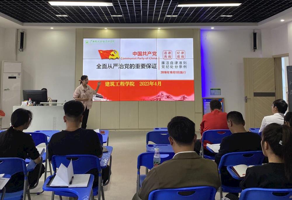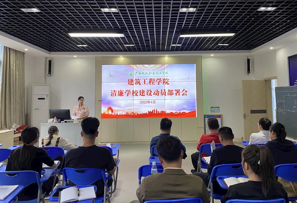 为贯彻落实全面从严治党体系任务要求,深入开展党风廉政建设和反腐败斗争,持续深化清廉学校建设工作,4月28日下午,建筑工程学院在第一实训楼202教室召开党员大会暨清廉学校建设工作部署会。会议由韦元秀书记主持,建筑工程学院党员教师参会。