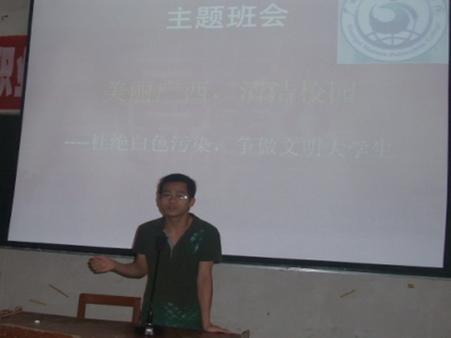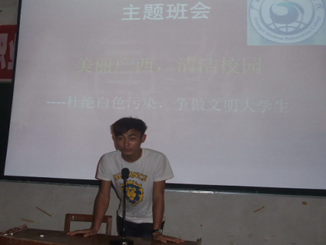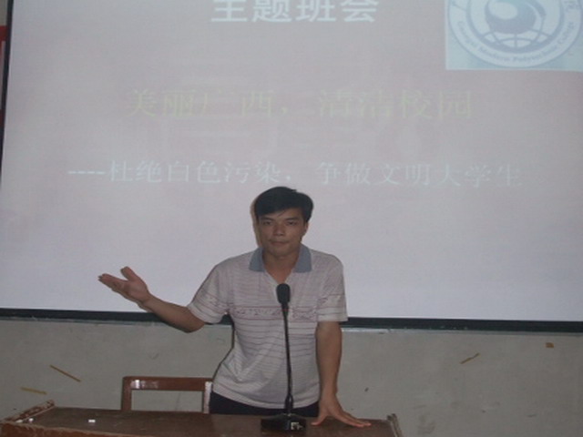 系结合本系实际,组织各班级开展了以“美丽广西·清洁校园”为主题的班会活动,党总支副书记黄耀老师、团总支书记吕璇老师深入各班级,参加了部分班级的主题班会讨论活动。
