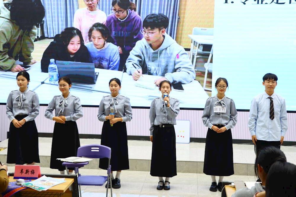 比赛达到了以赛促教,以赛促学的良好成效,师生共同探索专业岗位需求,研究岗位典型工作任务,明确专业学习目标。此次竞赛以团队为单位,每个团队4-6人,通过文档、PPT、讲解和现场答辩的形式进行。比赛的组织过程流畅有序,各参赛团队的作品制作精良,内容丰富,她们朝气蓬勃,意气风发宛如一个个冲锋战士,参赛团队结合专业特点和学科核心素养,条理清晰地向现场评委讲解了他们对专业人才培养方案和课程标准的理解,通过精炼的课堂语言、新颖的主题设计、灵活多变的教学方法,面对评委老师们的提问,各团队从容不迫,从专业角度精准对答。各团队代表台风稳重、思路清晰,答辩环节分工明确,团结协作,体现出大学生自信、积极、专业的青春风采。经过激烈的角逐,荣获第一名的分别是22小学教育花儿朵朵队和22早期教育人类幼崽领航员队。最后由教师教育学院副院长韦新梅对此次比赛进行点评和总结。