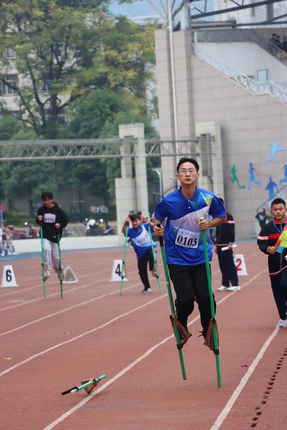 本次运动会包括陀螺旋转、高杆投绣球、背篓投绣球、50 米三人板鞋竞速、 男女混合 50×2 三人板鞋竞速迎面接力、50 高脚竞速、拔河等少数民族传统体育竞技项目,以及100 米、200 米、400 米、800 米、1500 米、300 米、 4×100 米接力、4×400 米接力等径赛项目和跳高、跳远、三级跳远、铅球、标枪等田赛项目。比赛过程中,我院运动员通过顽强拼搏、自强不息的精神和胜券在握的实力,在各单项比赛中取得了优异的成绩,众多的金牌、银牌、铜牌收入囊中,最终荣获田径运动会团体总分第一名、少数民族传统体育运动会团体总分第一名和体育道德风尚奖等奖项。