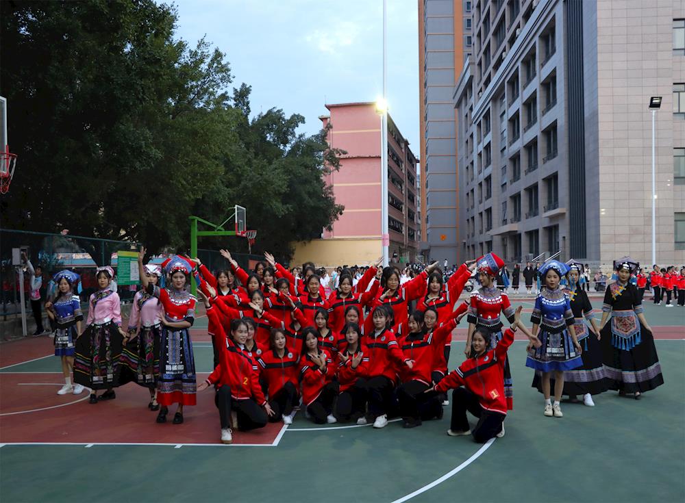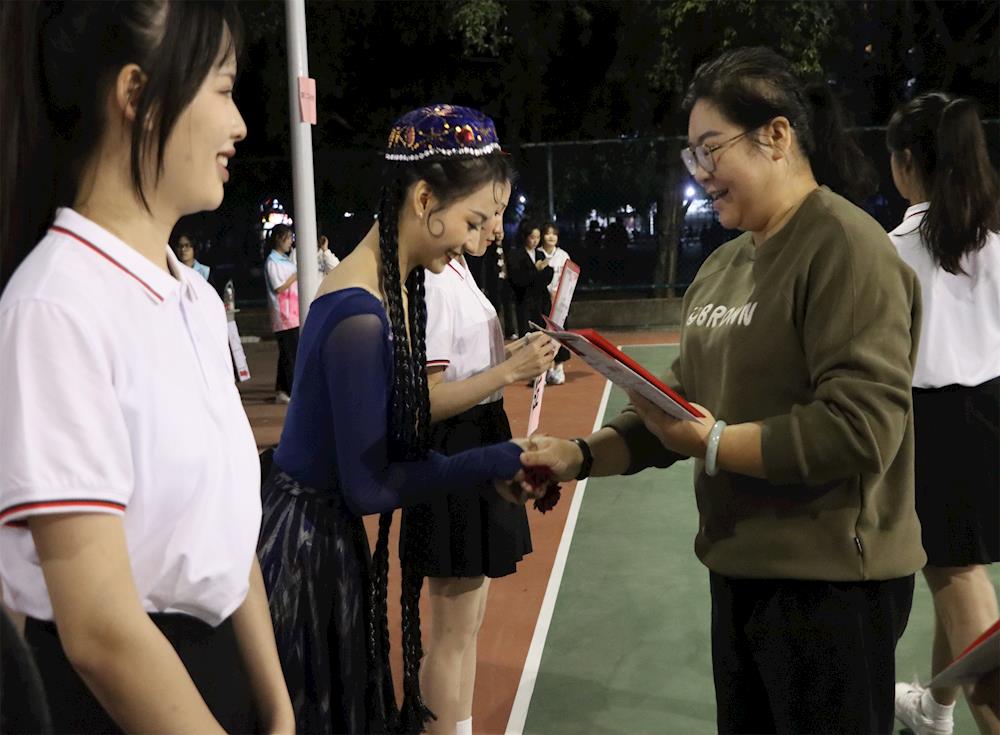 首先,王友高副书记对本次比赛进行致辞,他概括了本次活动的意义并祝福参赛班级取得优异成绩,鼓励更多学生积极参与比赛。接着,主持人介绍了比赛歌曲内容为“美丽中国”和“健康动起来”,并宣读比赛规则和评分标准。各班级轮流上场比赛,一组班级结束,下一组班级马上跟上,整个展演过程有条不紊衔接有序。