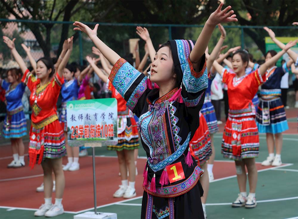为增强学生身体素质,活跃校园文化生活,促进学生德、智、体、美、劳全面发展,培养学生集体荣誉感,发扬团结友爱精神,教师教育学院于2023年12月8日在灯光篮球场举行了“教师教育学院第三届韵律操及幼儿舞蹈比赛”活动。出席本次比赛的嘉宾有教师教育学院党支部副书记王友高、分团委书记容婕、团总支书记陈红、辅导员班主任、我院全体参赛班级和学生会工作人员。韦联春老师、霍幸老师、商慧玲老师、钟凤艳老师担任本次比赛的评委。