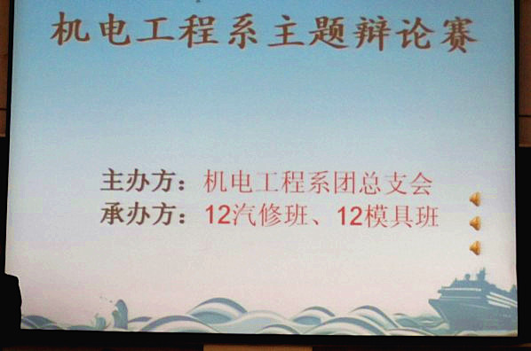 机电工程系讯(胡朗乐) 11月11日晚上7:30分,在第三阶梯教室,由我系12汽修二班发起,12汽修一班、三班和12模具班共同参与并举行了一场精彩绝伦的辩论赛,此次辩论赛的论点是“大学生兼职的利与弊”。