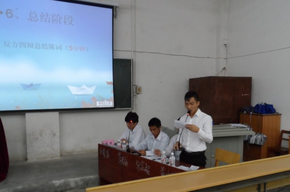 辩论过程中,正方代表认为“大学生做兼职是利大于弊”,他们的主要观点是:大学生做兼职可以为走上社会积累经验,锻炼自身各方面的能力,也可以为家庭减轻负担。而反方代表队则认为:大学生兼职势必会影响自身学习,学生们应以学习为重,而且,大学生生活阅历的缺乏会使自身利益难以保障。此次辩论赛气氛热烈,正反双方的辩手们各抒己见,有理有据,从不同角度,不同方面有条理地阐述了大学生兼职的利弊。在自由辩论阶段,选手们更是慷慨激昂,针锋相对,仁者见仁智者见智。