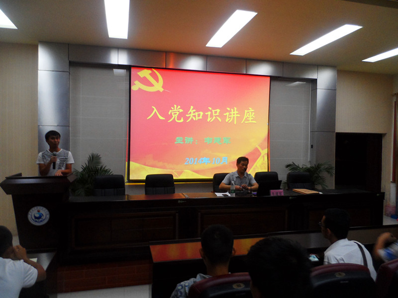 机电系党总支讯 为了吸收更多优秀的大学生共青团员加入到党组织中来,壮大党的年轻队伍,提高大学生对中国共产党的认识,机电工程系党总支于2014年10月13日在学院第一学术报告厅召开了新生入党知识讲座。