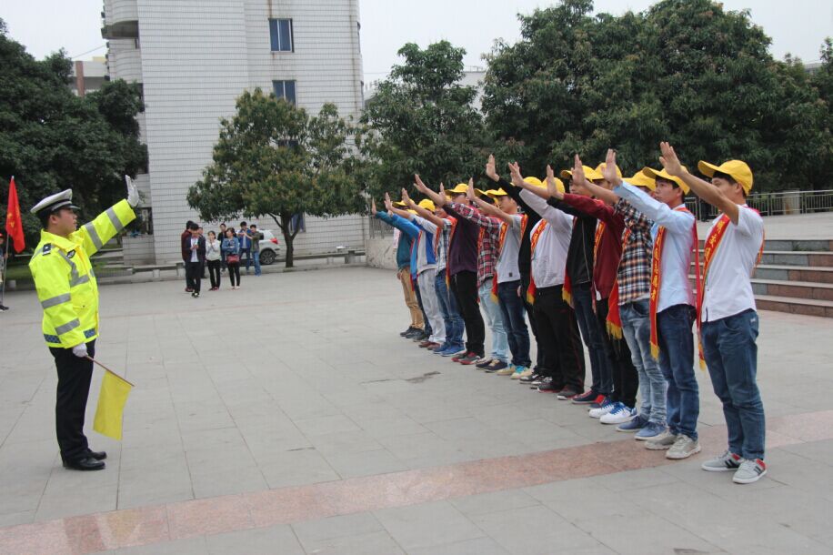 为能使同学们更好地熟悉和遵守交通规则,机电工程系携河池市公安局交警支队于2015年3月20日16:30在学院喷泉广场举办“争做交通协管员”培训活动,此活动得到河池市交警支队的大力支持。